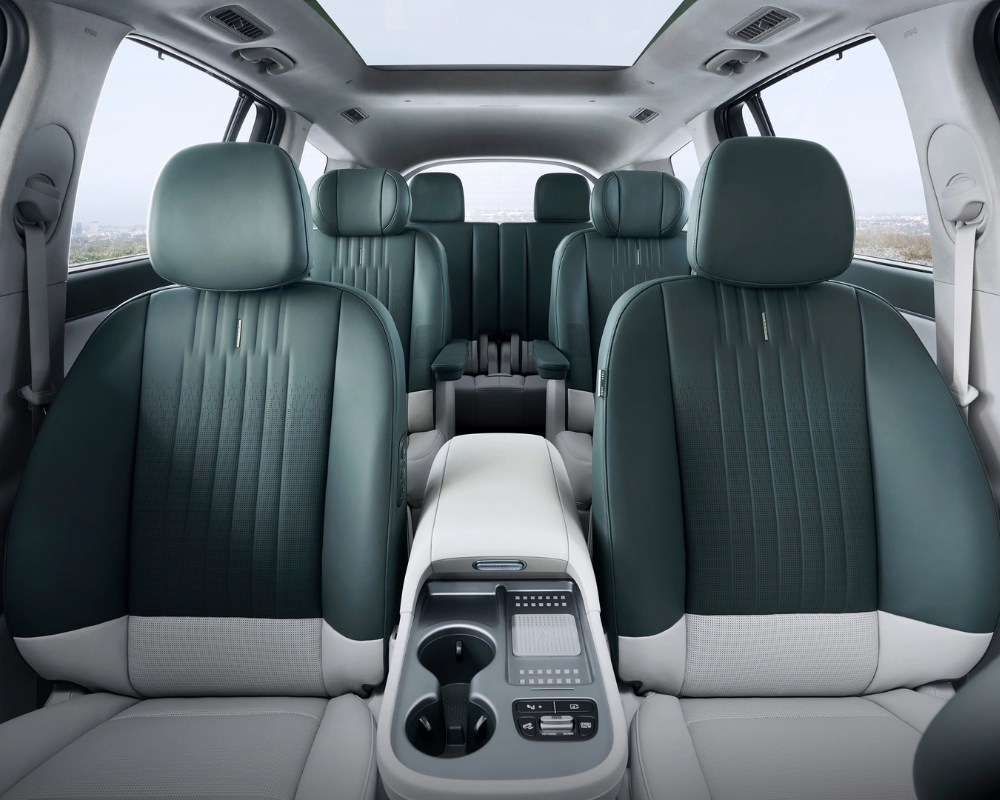 Step inside the EV and you will immediately notice its airy and relaxing cabin. With three rows of seating, it comfortably fits seven passengers, or six if you choose the captain’s chair configuration. The second-row relaxation seats, power-adjustable driver’s seat, and ventilated options ensure every occupant enjoys a premium experience.