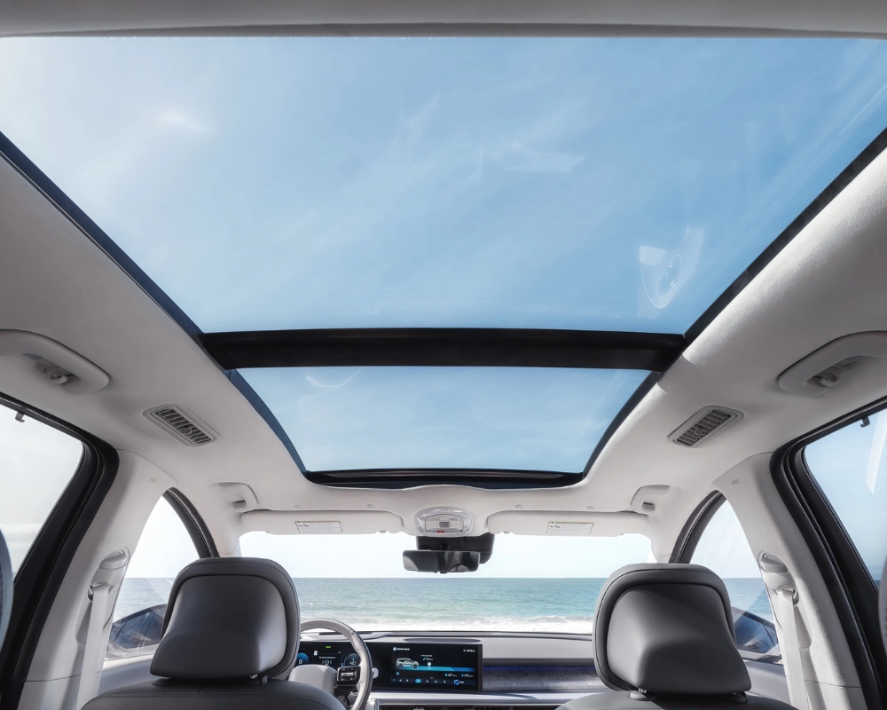 The design is futuristic yet familiar. With its bold pixel LED headlights, flush door handles, and strong stance, it makes a powerful first impression. The aerodynamic lines help improve efficiency, while the 21-inch alloy wheels add presence and style. The available panoramic sunroof and solar windshield glass bring natural light and better energy management to every drive. Colours like Abyss Black, Biophilic Blue, and Ionosphere Green give this SUV a premium look suited to any setting.